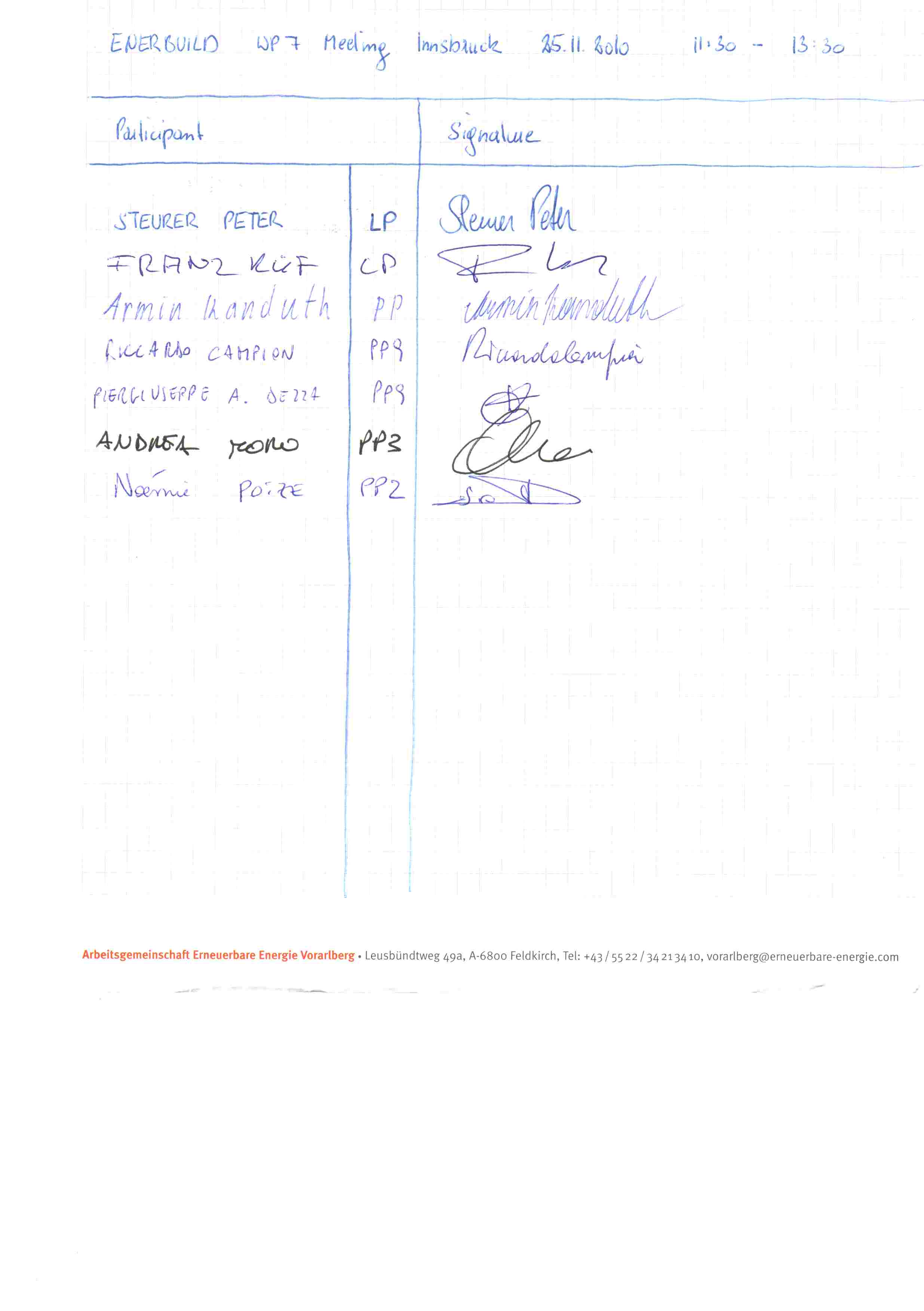 Home     Events     ENERBUILD events     10-11-24 Meeting Innsbruck     Meeting minutes and presentations     Participation list WP 7 meeting